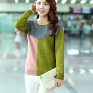 拼色针织套头衫